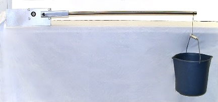 This picture shows the speed reducer undergoing a torque capacity test. The motor is locked and unable to turn. Weight is loaded onto the end of the 40-inch bar until the speed reducer fails.