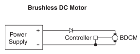 If the motor is likely to keep spinning after the power has been turned off, the reverse voltage generated by the motor can cause damage to the power supply. The use of a diode will prevent this reverse voltage from reaching the power supply. Here are sketches for diode placement for Brushed and Brushless motors. In most cases, these diodes are not required, but they are recommended for applications with high inertia.